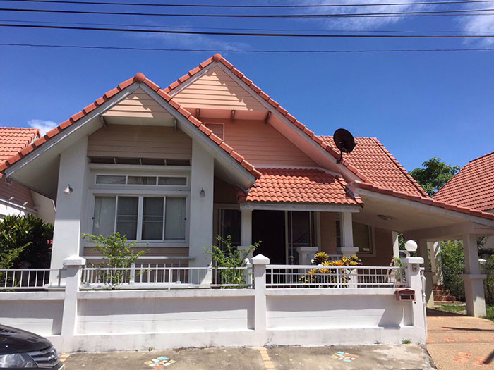 บ้านชั้นเดียวเป็นบ้านในโครงการมู่บ้านเงียบสงบ และมีการดูแลความปลอดภัยตลอด 24 ชม AHD-H0062 /